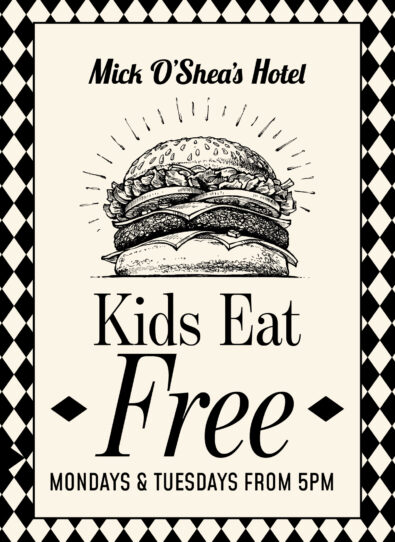 Bring the whole crew to Mick O’Shea’s and make a day of it. With a brand new playground, mini golf course, and free weekly kids’ entertainment, there’s plenty to keep the little ones happy while you sit back with a pint or a plate. Relax, unwind, and enjoy good times for all ages in our sunny beer garden.